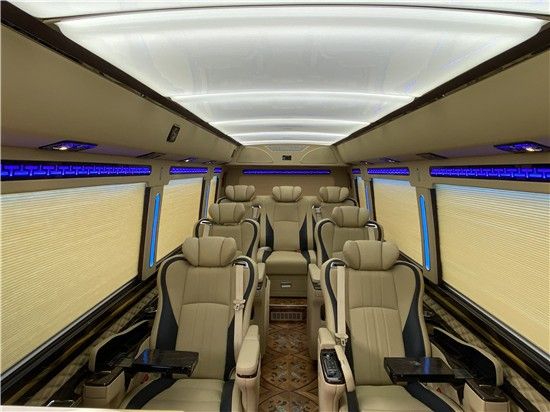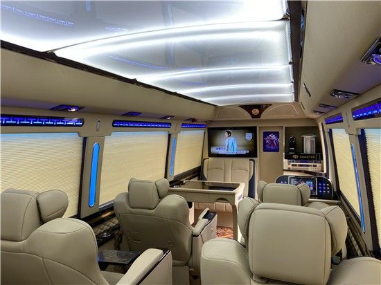 丰田考斯特改装商务车,在驾驶室与乘客席之间增加隔断,隔断可以是全封闭形式也可以是增加电动门的半封闭形式,丰田考斯特改装商务车隔断的设计能够为乘车人员提供一个更加舒适安静的环境,同样也可以在一定程度上使驾驶员免受杂音的骚扰,保证行车的安全。在隔断的设计上,丰田考斯特改装商务车还可以增加一些装饰,电子时钟或者是显示屏的设计既能够增加美观,又能节省车内的空间。