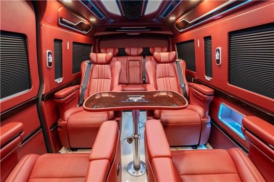 丰田海狮整车升级了加强型的隔音隔热处理,车内带空气净化系统,无线充电系统。在进门侧加装了氧化铝脚踏带迎宾灯的,华通丰业整车都是采用纳帕级皮质进行包覆的,侧壁红木装饰,手动百褶窗帘,后舱暖风系统,最后说说棚顶灯光,这个有智能触摸控制系统。灯光超级棒。