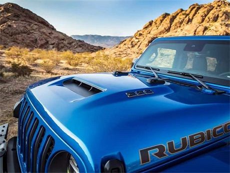 除此之外,为了应对V8发动机更大的进气和散热需求,该车发动机舱盖具有隆起式设计,并在撞风面增加进气口。同时,这款车发动机舱盖除Rubicon标识外,还新增392数字体现其特别身份。
