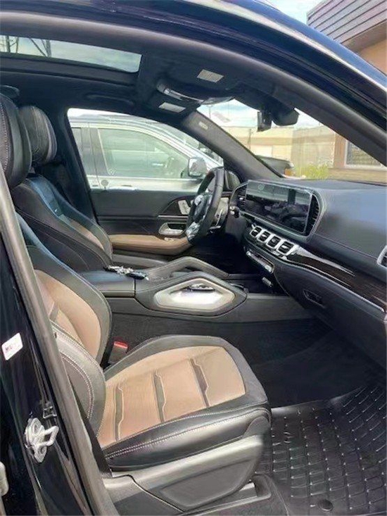 22款奔驰GLS63内饰覆盖件采用实木装饰板或碳纤维材料,仪表、方向盘和黑色地垫上印有AMG的字样。值得一提的是,仪表台和车门板处采用Artico人造皮材质,配合上石灰木纹的表面设计凸显了高端氛围,整车内饰无不透露着金钱的味道,柏林之声顶级音响必然没有缺席。