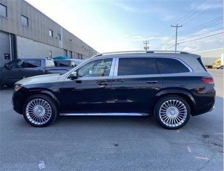 22款奔驰迈巴赫GLS600侧面22-23英寸的迈巴赫专属轮毂引人瞩目,上面还带有吸音泡沫,进一步降低胎噪,给予乘客静谧的乘坐空间。超高的车身看起来十分大气,同时还配备了电动迎宾踏板方便上下车,其上还带有迈巴赫标识,方便用户在上车时得知这是一台迈巴赫。当然车身上的那个经典标识也没有缺席。