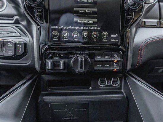 22款道公羊奇霸王龙中控台和座椅随处可见的TRX标识便是最好的例证。同时,作为道奇家族的旗舰车型,新车还配备了12英寸竖置中控屏幕,除了支持蓝牙、导航和车载Wi-Fi等常见功能,还支持Apple CarPlay和Android Auto手机映射。