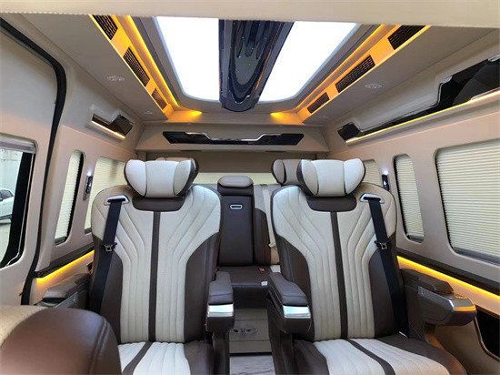 全新22款平行进口丰田海狮HIACE商务定制版整车升级了加强型的隔音隔热处理,车内带空气净化系统,无线充电系统。在进门侧加装了氧化铝脚踏带迎宾灯的,整车都是采用纳帕级皮质进行包覆的,侧壁红木装饰,手动百褶窗帘,后舱暖风系统,最后说说棚顶灯光,这个有智能触摸控制系统。灯光超级棒。