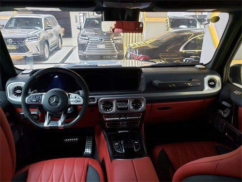全新22款平行进口奔驰G (配置|询价)63豪华精致的真皮包覆提供了足够的舒适性和支撑性,通风和加热功能让乘客免受高温和寒冷的煎熬。中控台多处均采用碳纤维材料覆盖,带彩色TFT显示屏的AMG仪表盘、AMG主菜单和单独的挡位显示器以及采用白色照明的AMG门槛。名贵的选材及精湛的内装令人拍案叫绝。