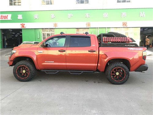 20款丰田坦途皮卡粗犷庞大的身形完全给我留下美式风格的初步印象,而高大的车身也能完全能让那些路上平时很嚣张的高档SUV产生一股莫名的紧张感。