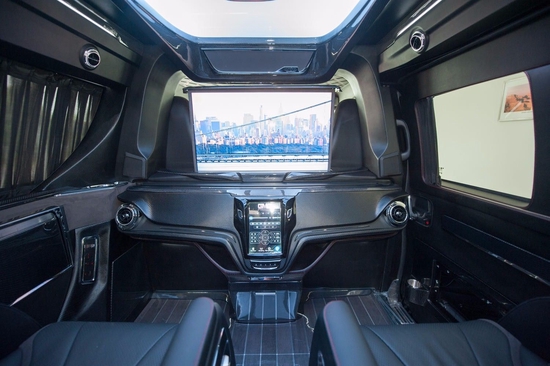 GMC商务车为了让车内拥有娱乐办公功能,又能保持活跃气氛,设计团队费劲心思,打造了全新无全封闭式前后舱,仅用可升降液晶电视做隔档,既能放下隔档与驾驶舱愉悦交谈,也能升起电视休闲、工作一下。