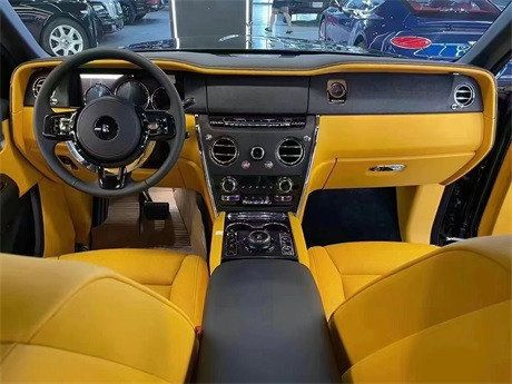 劳斯莱斯库里南内饰基本与幻影 (配置|询价)别无二致,中控台的设计很高效,非常考究的用料设计,现代科技与复古奢华相结合,也许就是这台车的无限魅力吧!方向盘的设计真的非常普通,但是这个方向盘上所集成的功能一点都不少。三盘式设计的仪表,信息显示不算很多。内部按键都是采用镀铬处理,并搭配豪华皮革及高级木材,给车主最豪华的内饰,同时劳斯莱斯还给你留下极大地选装余地,给车主一台属于自己别一无二的库里南。