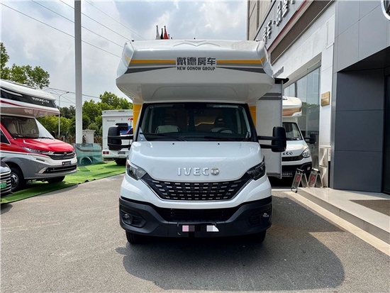 进口依维柯New Daily底盘的驾驶室体现的是精致和商务气息,尤其是戴德E途系列房车多以商务大气的稳重形象展示。新车搭载一款3.0T柴油涡轮增压发动机,匹配8AT变速箱,峰值扭矩430N·m,最大功率125kW。安全辅助系统方面,如胎压监测、防侧风系统、坡道辅助系统,自适应巡航,牵引力控制系统,自动大灯,自动雨刷器等等,可以说它的丰富程度在一些轿车上都少见,依维柯更多的是想让这款车底盘车型轿车化,以适应改装房车之后对应驾驶舒适性的考量。