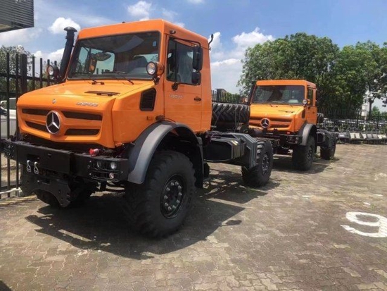 新款四驱进口奔驰乌尼莫克U4000拥有强劲的越野性能,很大程度上得益于其“鹅颈式”纵梁的布置。梯形车架与两个相对的纵梁构成一个U字型,并焊接在管状纵梁上,可允许横纵梁产生较大的扭转度,通过横向推杆与螺旋弹簧间的联动,能实现高达30度的车桥对角扭。