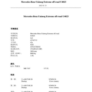 进口四驱4.8T奔驰乌尼莫克 U4000像朴实的埃森地区人那般,逐渐成为奔驰细分市场的骄傲。隆起的前格栅与奔驰另外一款经典越野车G级 (配置|询价)(配置|询价)颇为相似,横向的中网格栅体现出它最纯粹的越野风格。不同的是中网下方,乌尼莫克U4000采用方形的防护灯罩,灯罩具备可拆卸的功能,细心观察,它的照明灯组均来自著名的海拉(Hella)公司。