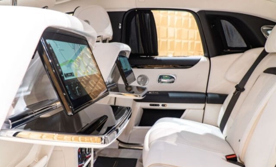 劳斯莱斯古斯特纯手工打造的内饰,处处都体现着精致感,由2000名工人,经过60双手,花费至少20天打造。三辐方向盘尺寸适中,握起来很舒服。控台配有一块石英表,看起来很复古,与劳斯莱斯车型的高贵相互映衬。中控台配备了10.25英寸显示屏,集成了导航、多媒体、蓝牙电话、行驶信息等。