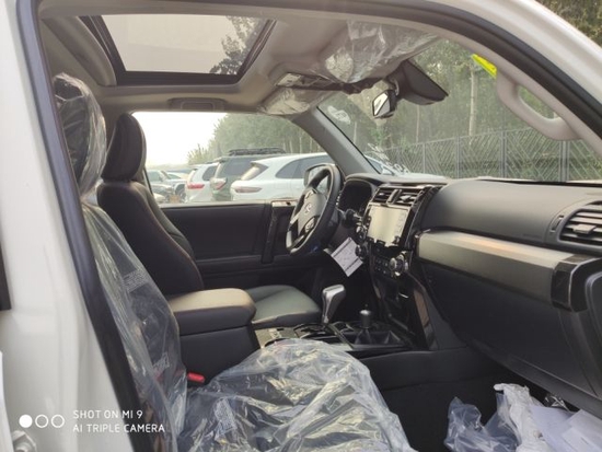 22款丰田超霸4.0 TRD OFF ROAD 配置5座+(新配置:摇启,8寸高清大屏,安卓苹果系统兼容,智能卡,一键启动,主动安全系统:变道警示,雷测,自动远光,防撞预警) 4.0升Ⅴ6双ⅤVT-i发动机,非承载式车身,LC150底盘。丰田最精典KDSS电子控制动力调节悬架系统,多路况选择系统,蠕动爬行系统,扭矩放大,后差速锁,手动分时四驱,高原进气补偿,天窗,在线智能音乐库播放系统,5速变速箱,雾灯,后尾翼,行李架,脚踏板,巡航定速,胎压监测,VSC,TRAC,ABS,EBD,BA,上下坡辅助,10气囊,倒车影像,电加热外后视镜,防炫目后视镜,TRD专属17寸六幅铝合金轮毂,主副驾真皮电动座椅带加热及主驾腰部支撑,隐私玻璃,电动后尾窗,后摄像头,全车双脚垫(丝绒和防水橡胶),轮胎防盗,车库锁 炭纤维内饰,5座。发动机罩进气口,TRD前后护板包围。
