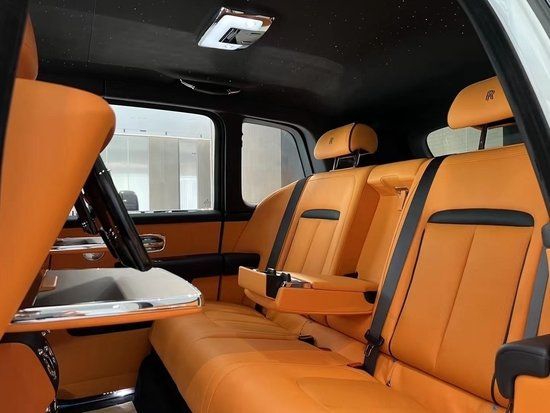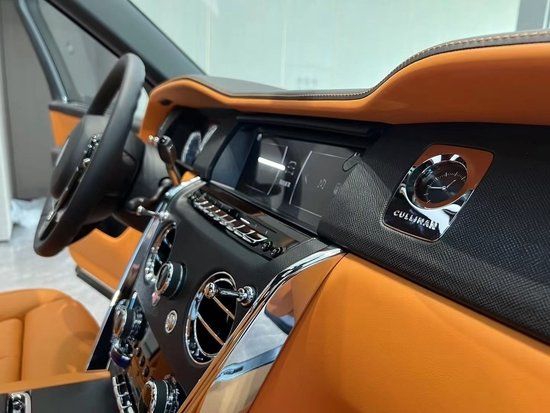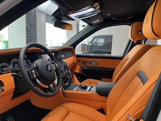 劳斯莱斯库里南内饰延续了全新幻影的设计风格,整体用料依旧一如既往的奢华高贵,中控采用大面积实木打造,配合方向盘上的实木点缀,既复古又豪华。中控屏幕尺寸为10.2英寸的屏幕,轻触车门把手上按键就可以电动关闭,后排控制台与前部是断开的,在狭窄环境停车后排乘客可以选择任意一侧下车。
