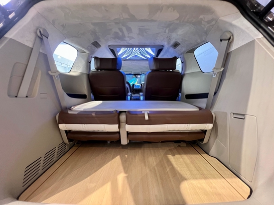正副驾驶座椅后方也是升级了隐藏式的杯托、220V插座和USB充电口,方便后舱老板们充电和商务洽谈,加装独立办公小桌板,承重性好,并且商务办公更加方便。全车的镜面梣木地板,艾维亚的Logo与底部氛围灯的搭配,让整车更具尊贵与豪华感。