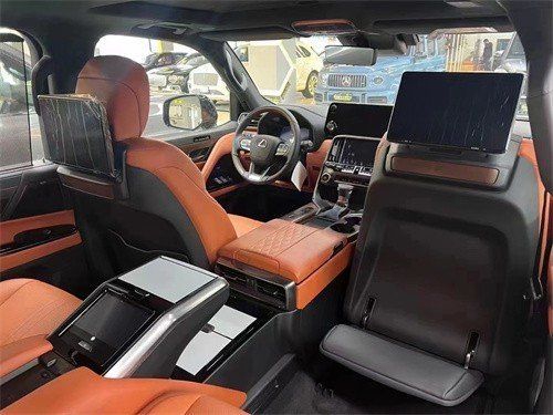 雷克萨斯LX600侧面采用了相对简约、流畅的线条设计,轮毂采用了22英寸锻造铝轮毂。车尾则选用了隐藏式排气布局,尾门上方选用了与NX (配置|询价)(配置|询价)(配置|询价)车型较为相仿的贯穿式LED尾灯组。 雷克萨斯LX600采用了对称式中控台设计,继续提供液晶仪表和HUD抬头显示等配置,并首次加入双屏显示器,该中控屏由12.3英寸的上屏和7英寸的下屏组成。另外,车辆启动按钮被设置在了中控屏一侧,并首次配备了指纹识别。
