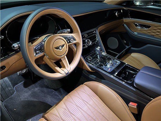 22款宾利飞驰造型精致的三辐式多功能方向盘采用真皮包裹,握感饱满细腻,左右两侧和外辐采用了内凹的皮面增加摩擦力。横辐上的闪亮的镀铬滚轮与底部小面积镂空镀铬装饰提升了视觉上的精致度。功能上,支持电动上下、前后调节,配备有换挡拨片、记忆功能。