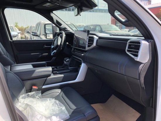 2022款丰田坦途铂金版的内饰做工十分精致,真皮座椅、桃木的方向盘、动感仪表盘,在简约的同时,透露着稳重与典雅的气息。仪表盘几乎颠覆了之前的全部设计,造型极为新颖。换挡杆造型没有变化,中央扶手箱的凹槽可以存放手机等杂物。