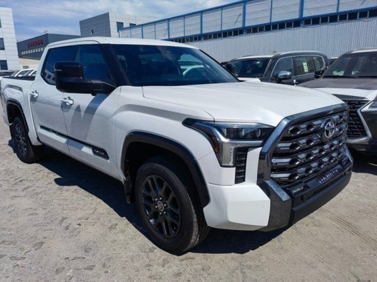 丰田坦途铂金版的整体轮廓依旧给人一种高大威猛的感觉,整车均采用平直且硬朗的肌肉线条设计,不过在车辆的前脸设计上,却显得比较夸张,巨大的黑色前格栅,内部采用了横幅蜂窝中网布局,同时在周围还加入了镀铬装饰。
