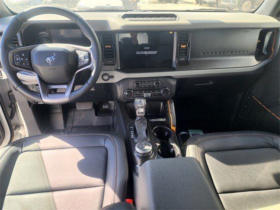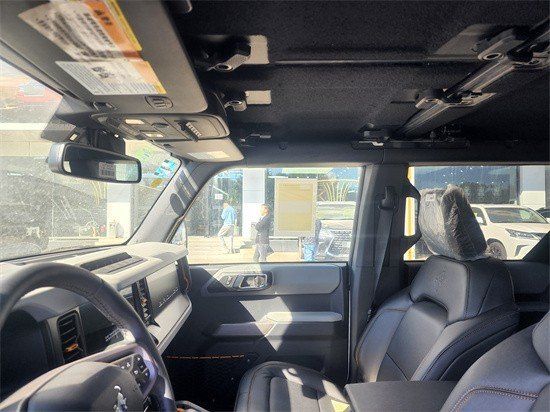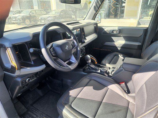 全新22款福特烈马Bronco车内采用硬朗的设计风格,中控台设计主次分明且有层次感,用料也厚实,多功能方向盘造型运动,中控屏幕采用内嵌式的设计增添了车内的时尚感,按键布局合理,档把设计精致,座椅宽大厚实,空间宽敞,实用性强。