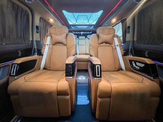 奔驰V260L改装隐藏六座全隔断商务车,后排座椅采用两个迈巴赫62S首长级座椅,带加热,按摩,通风,一键式电动调节记忆等功能。奔驰V260L改装高顶隔断商务车座椅符合人体工程学设计,同时带有电动椅背调节,电动头枕,电动前后调节,一键式伸缩腿托功能,带来头等舱级舒适体验,私家客厅级后舱体验。奔驰V260改装迈巴赫VS900商务车内饰的整体设计是婉约柔和的,整个采用米色为主色调,更显淡雅清净内饰也是定制升级过的,显得高端大气。定制风格采用经典的元素,宽大的航空椅配上舒适头枕,坐在上面就想美美睡上一觉,座椅带有8向的电动调节,超长的腿拖和按摩功能智能座椅甄选顶级材质,菱格纹理彰显精湛手艺。