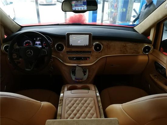 奔驰v260L盛世祥云版隐藏六座商务车,中控采用奔驰S 级中控,炮筒式仪表盘,8.4寸的液晶显示屏,左右驾驶室的座椅中间加了扶手冰箱,以及前后仓电话功能。动力方面依然采用的是2.0T 的涡轮增压发动机,配备9速手自一体变速箱。