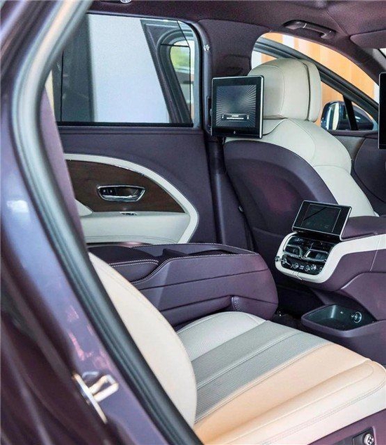 23款宾利添越加长座椅功能方面也用料十足,真皮包裹的座椅乘坐感受一流,而且坐姿可以调整到最舒适的角度,无论是包裹性还是舒适性都符合自身价值与定位。