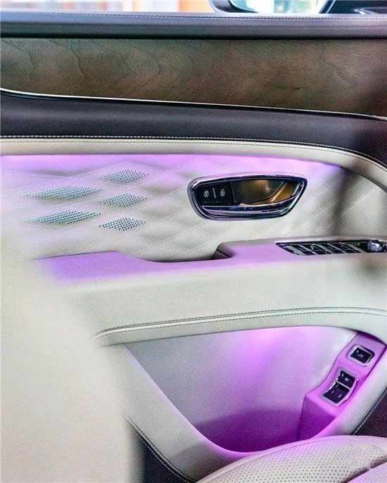 23款宾利添越加长缝线采用数字化工艺进行优化设计。经过重新构思的菱形纹理更为修长,以椅背肩部位置的中心向外对称延伸至两侧车门,与修长的车身相呼应,强化了车辆的整体空间感。