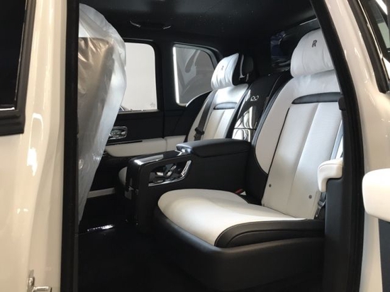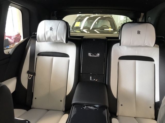 劳斯莱斯库里南BB版座椅设计彰显劳斯莱斯汽车的品质与工艺,简洁的马蹄铁图案,强调座椅的支撑力。整体椅背由一整张皮料精心塑形,打造出极为立体的表面。后排两个独立座椅之间设有后排中央固定扶手,可容纳带有劳斯莱威士忌酒具的酒柜、香槟酒具和冷藏箱,为后排乘客带来旅途中的终极享受。