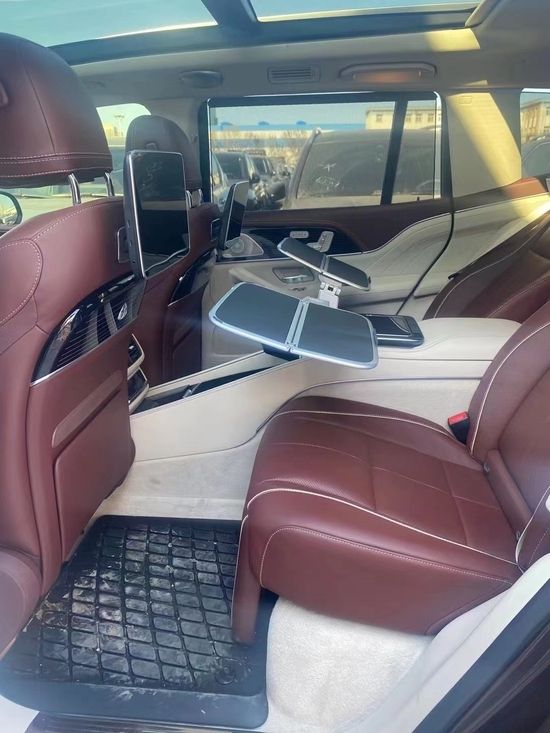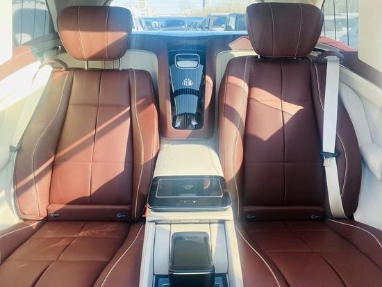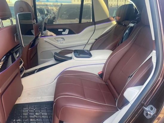 前排介绍就这么多,因为我要重点介绍后排,毕竟那才是这辆车的“卖点”所在。首先可以看到的是后排与奔驰GLS最大的区别就是采用了两张独立行政级座椅的设计,相比较五座车型后排的舒适性可想而知。