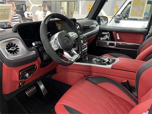 内饰方面,新款G63依旧采用了大尺寸双连屏,这是奔驰品牌经典的内饰设计语言。同时,作为AMG车型,新车还在车内大量运动碳纤维材质点缀,运动氛围营造搭配。