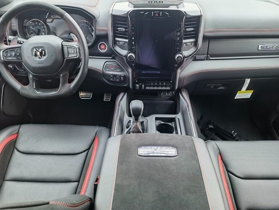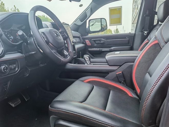 22款全新道奇公羊霸王龙内饰部分进一步强化了其高性能版本的形象,中控台和座椅随处可见的TRX标识便是最好的例证。同时,作为道奇Ram家族的旗舰车型,新车还配备了12英寸竖置中控屏幕,除了支持蓝牙、导航和车载Wi-Fi等常见功能,还支持Apple CarPlay和Android Auto手机映射。详情可咨询:18526836885 徐经理 电话同微信