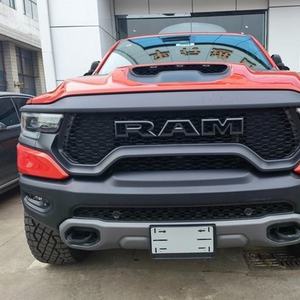 22款道奇公羊霸王龙TRX国六最新款新车传承了道奇RAM家族高大威猛的造型设计,同时细节部分融入了更多高性能元素,包括经过黑化处理的前格栅,引擎盖两侧的黑色进气口,以及为了容纳巨大的机械增压器而设计的通风口等等。此外,新车还配备了视觉冲击力更强的黑色轮眉和外露式的拖车钩,看上去十分霸气。