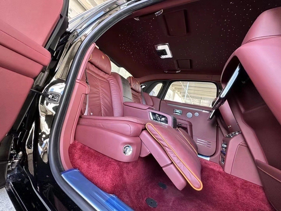 劳斯莱斯古斯特车辆舒适度方面,新车目前提供了4座版本,可选装带角度调节功能的椅。后排座椅中间提供了冰箱。隔音效果上,新车在车顶、车门、车底等位置填充了超过100kg的隔音材料,双层车窗玻璃中间则填充了透明复合隔音材料,并在轮胎内以超轻隔音泡沫进行填充,从而降低了车辆行驶过程中的各种噪音。