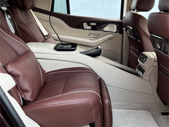 22款迈巴赫GLS600采用了四座布局,其中第二排独立座椅相比普通版GLS更为靠后,同时还带有巨大的腿拖,而中央部分则是由控制台、储物空间和手机无线充电台等进行贯穿,并呈现出了类似于迈巴赫S级 (配置|询价)相同的头等舱设细节面圆润饱满的设计。
