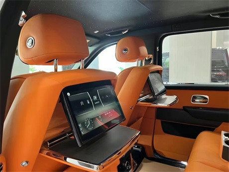 劳斯莱斯库里南中控采用大面积实木打造,配合方向盘上的实木点缀,既复古又豪华。中控屏幕尺寸为10.2英寸的屏幕,轻触车门把手上按键就可以电动关闭,后排控制台与前部是断开的,在狭窄环境停车后排乘客可以选择任意一侧下车。