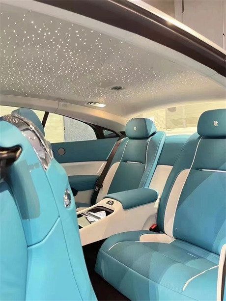 劳斯莱斯魅影温馨浪漫的星光饰顶是任何一辆豪华轿车都无法媲美的,通过1340根导光纤维手工制作的星空车顶,可以说是劳斯莱斯最有吸引力的配置之一,给您前所未有的观感,即便是阴天下雨,也可以在车内怡然自得的观赏星空。