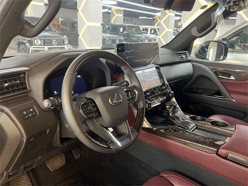 雷克萨斯LX600侧面采用了相对简约、流畅的线条设计,轮毂采用了22英寸锻造铝轮毂。车尾则选用了隐藏式排气布局,尾门上方选用了与NX (配置|询价)(配置|询价)(配置|询价)车型较为相仿的贯穿式LED尾灯组。 雷克萨斯LX600采用了对称式中控台设计,继续提供液晶仪表和HUD抬头显示等配置,并首次加入双屏显示器,该中控屏由12.3英寸的上屏和7英寸的下屏组成。另外,车辆启动按钮被设置在了中控屏一侧,并首次配备了指纹识别。