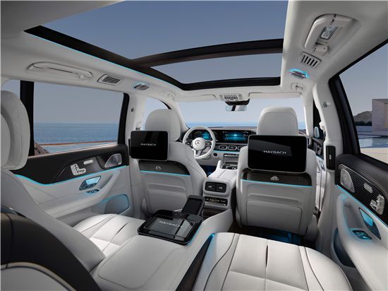 作为一款梅赛德斯-迈巴赫,内饰的舒适性与豪华性毋庸置疑。新车采用四座布局,第二排独立座椅相比普通版GLS更加靠后,并且带有巨大的腿拖,中央由控制台贯穿,呈现出类似于迈巴赫S级一样的头等舱设计。细节方面,我们能够看到新车座椅、车柱、车窗框架、车顶和仪表盘等位置采用Nappa真皮包裹,辅以梅赛德斯-迈巴赫独有的玫瑰金色缝线和滚边,并运用了多个迈巴赫专属标识。车内所有座椅均为多仿形座椅,均可多角度电动调节、并提供热石按摩、加热通风与记忆功能。后排乘客将拥有专属后排娱乐系统、靠枕、独立温区空调、后排触控平板等。