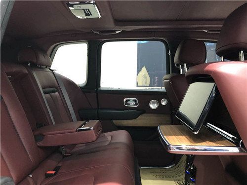 21款国六劳斯莱斯库里南这块中控屏幕首次采用了触控设计,表现出了鲜明的科技感与现代感。中控屏幕内部界面采用简约商务风设计,显示清晰细腻。多媒体面板两侧集成了诸多功能,左侧包括泊车雷达、车身升降、倒车影像,右侧为陡坡缓降和越野模式。并且该车还配备有夜视和视野辅助系统、四摄像头全景监控系统等诸多前沿技术。