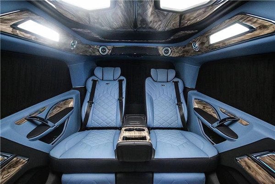 第三排座椅并没有采用电动沙发床的配置,而是采用424的独立调节靠背航空座椅,和第二排座椅一样的都有通风、加热、按摩、电动腿托的功能,于细微处照顾到车内的所有乘客。