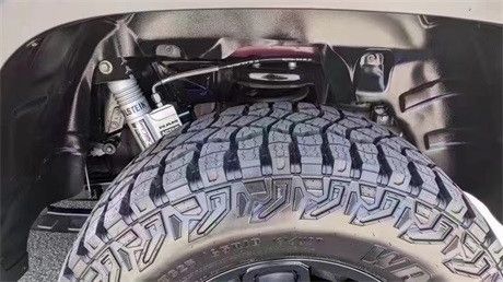 全新22款道奇霸王龙四驱方面选配了博格华纳48-13全时四驱分动箱,低扭放大2.64:1,可通过面板开关选择低扭放大,标配后轮电子差速器,前轮用刹车模拟限滑功能,后轴采用Dana60五连杆减震,离地间隙300mm,比其它Ram 1500皮卡的离地间隙高了75mm。
