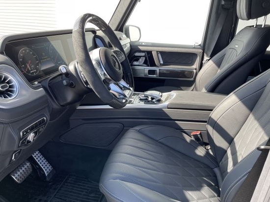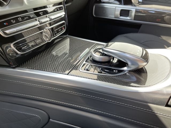 21款奔驰G63豪华精致的真皮包覆提供了足够的舒适性和支撑性,通风和加热功能让乘客免受高温和寒冷的煎熬。中控台多处均采用碳纤维材料覆盖,带彩色TFT显示屏的AMG仪表盘、AMG主菜单和单独的挡位显示器以及采用白色照明的AMG门槛。名贵的选材及精湛的内装令人拍案叫绝。