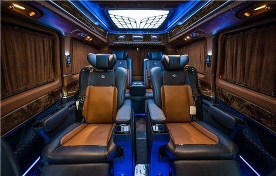 奔驰V260L版以下是贵宾舱二个总裁座椅,这二个座椅具有记忆功能,何为记忆功能呢?就是一键展开及一键收回,这个座椅是根据人体工程学设计而成,能一键式找到您身体最舒适的角度。在总裁座椅双侧有两个隐藏式桌板。总裁座椅中间有个热感电子触摸屏幕可控制后舱设备,屏幕下方有个“语音控制系统”也可控制整个贵宾舱的设备。