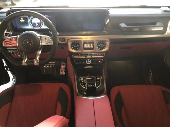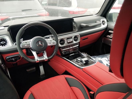 21款奔驰G63配置:Gmanufaktur内饰包(菱形格座椅带红色缝线,Nappa真皮仪表台,头枕、脚垫图标,多轮廓按摩通风快速加热前座椅,GManufaktur副驾扶手标志,鹿皮顶),暗夜包(熏黑保险杠,熏黑外观套件,熏黑前后灯),22寸锻造轮,碳纤维加热方向盘,碳纤维内饰,前后红卡钳,轮毂锁,四季地垫。