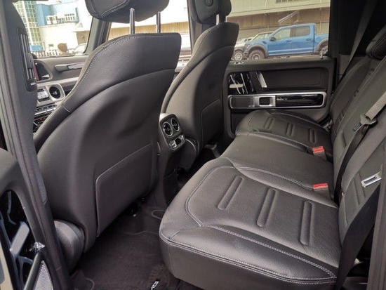 21款奔驰G63中控台采用大量银色金属亮条搭配与中央手扶箱融为一体,虚拟的仪表盘与中控12.3英寸液晶屏融为一体颇具时尚气息,中控涡扇式空调出风口也颇具设计感,车内的高档皮革内饰以及标有V12钻石图案设计的座椅、车门面板和脚垫,无不彰显着车主的尊贵身份。