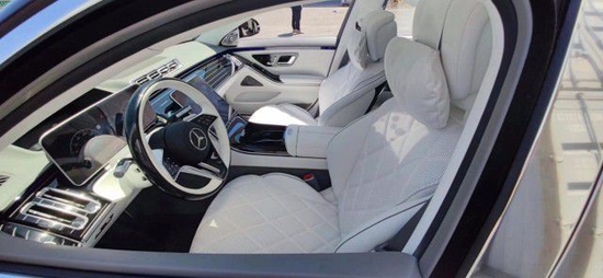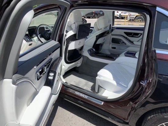 新车的后排座椅非常豪华,上面采用了菱形的纹路,门板上也采用了非常精致的设计全新迈巴赫S580车顶采用了真皮顶篷,扩展的中控台还具有折叠桌,USB和HDMI插座。“行政后排座椅”套件可将标准长凳座椅替换为由中央控制台分隔的两个后排座椅。