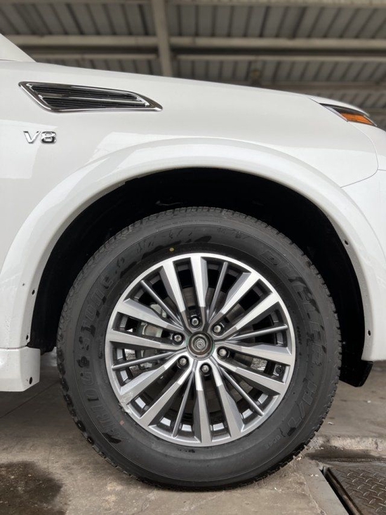 22款尼桑途乐5.6侧面造型方正稳重,平直的腰线将整车的尺寸以及气势很好的表达出来。车身尺寸方面,美版途乐长宽高分别为5165/1995/1940mm,轴距达到3075mm,加上273mm的离地间隙,看上去十分高大威猛。在轮毂尺寸方面,新款ARMADA将会提供20英寸以及22英寸的多个款式可选。