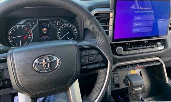 22款丰田坦途的内饰设计也采用了新设计风格,“硬”还是第一感受。无论是平直的线条还是灰白的用料配色,车内的风格都是非常偏向于越野,宽大的悬浮式液晶中控屏幕也是挺抢眼的,根据不同配置也将提供有8英寸以及14英寸的不同配置,就是这个感觉还是很像“大彩电”,只是放在这台车上会显得更协调一些,功能上也丰富了在线车联网以及CarPlay车机互联功能。