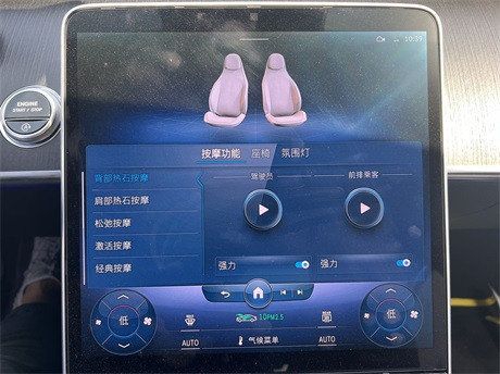 22款奔驰S500中控台垂瀑式中央触控屏从中控台纵向延伸,凸显出了简约的设计感。整个内饰的豪华感当然是无须质疑,触手可及之处几乎全用上了皮革包裹,配合带263个LED单元的动态氛围灯进一步升华了内饰氛围感。AMG Line的方向盘通过对造型的重新雕塑,变得更加立体。