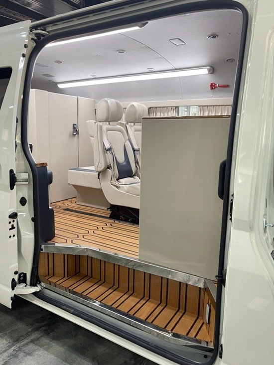 丰田海狮加装商务车改装前后之后判若云端的设计更加体现在内饰灯光的设计上。华通丰业丰田海狮改装商务车原车出厂之时内饰颜色单一,宽敞的内饰空间也需要更加高端的照明。丰田海狮改装商务车,对于照明的设计上,我们可以选在车顶安装LED大灯,满足我们照明的需要。